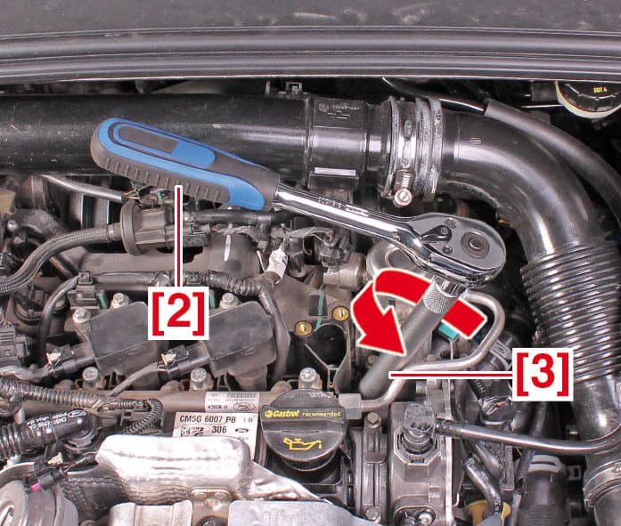 - Serrer la bougie au couple prescrit (13 N.m) à l’aide d'une clé dynamométrique et de la douille [3].