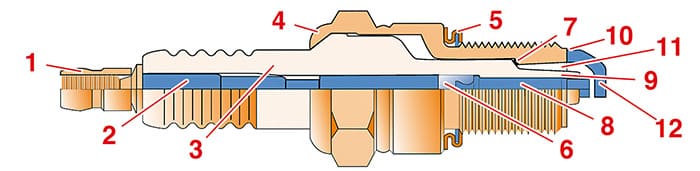 - Pied de l’isolateur (il influence considérablement l‘indice thermique de la bougie d‘allumage)