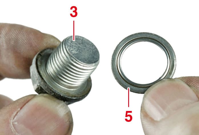 - Remplacez le joint (5) du bouchon de vidange (3) (Fig.5).