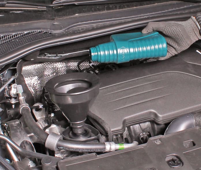- Placez l'entonnoir en lieu et place du bouchon de remplissage (Fig.6).