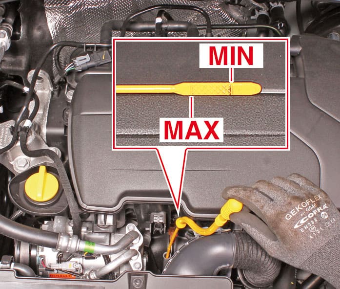 - Lire le niveau d'huile ; si nécessaire, faire l'appoint.