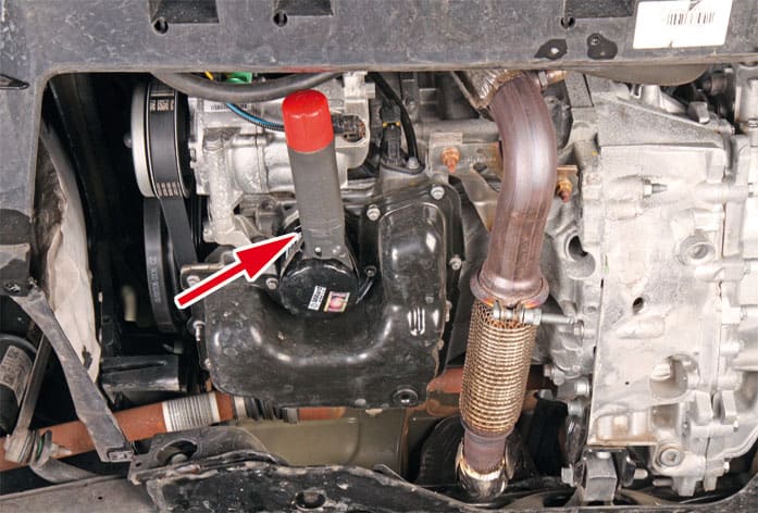 - Démarrer le moteur et le laisser tourner quelques secondes. Le filtre se remplit d'huile.