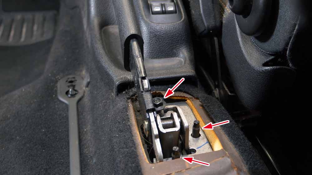 - Déposez l'écrou situé sous la commande des lève-vitres.