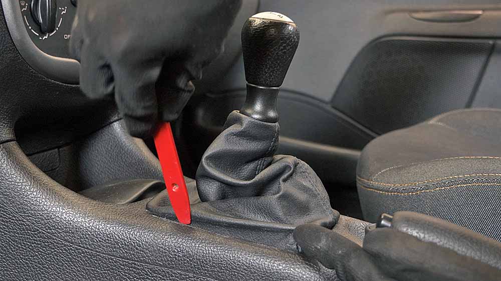 - Dégrafez et soulevez le soufflet du levier de vitesses.