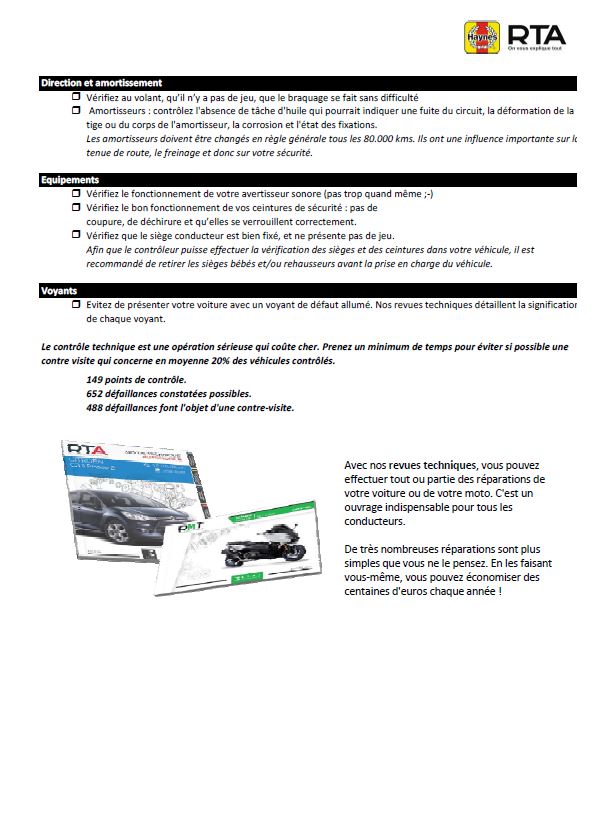 Merci pour ce PDF de contrôle technique, justement je vais passer le contrôle technique d'ici un mois; Ca va être très utile ce check List de contrôle technique , merci encore c'est appréciable