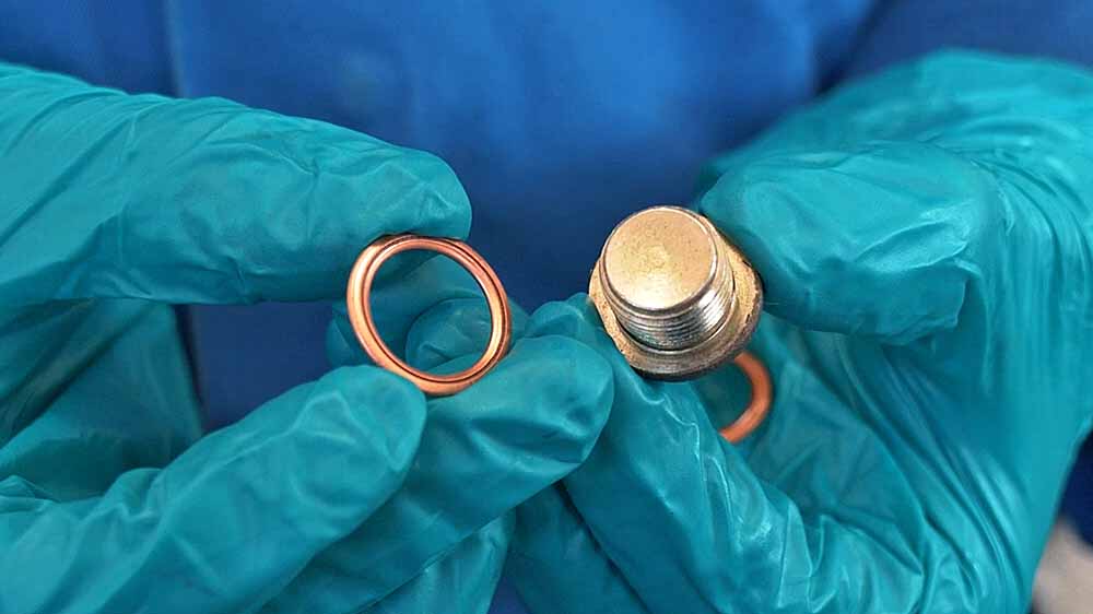 Positionnez la rainure du joint neuf vers le bouchon de vidange.