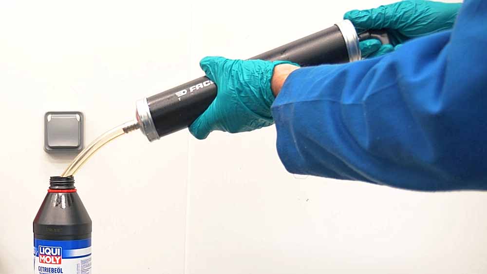 - Injectez l'huile dans la boîte de vitesses par l'orifice.