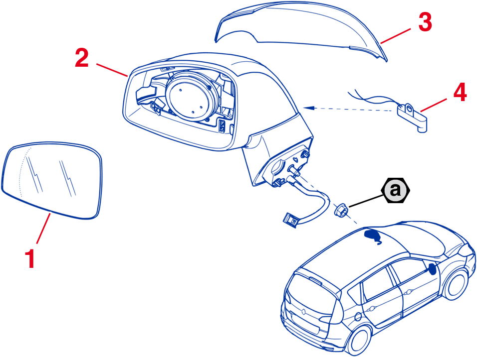 - La dépose de la glace d'un rétroviseur extérieur est nécessaire pour, par exemple, la remplacer ou pour accéder aux fixations de la coquille du rétroviseur.