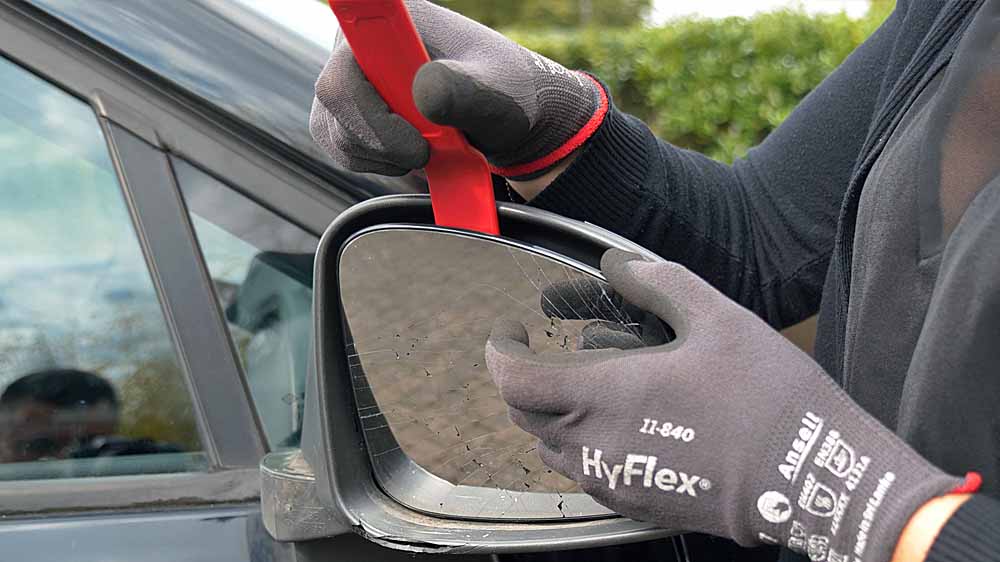 - Insérez un levier entre la glace et le bord du rétroviseur.