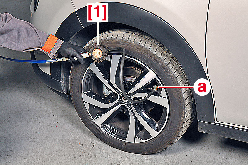 - À l’aide du gonfleur [1], contrôlez et, si nécessaire, ajustez la pression.