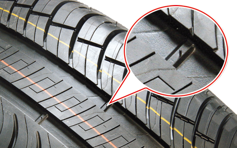 Des bosselages sont répartis au fond des sculptures principales de la bande de roulement et font office de témoins d’usure. Ils indiquent que la limite légale de l’usure du pneu est atteinte quand la bande de roulement affleure le sommet d’un des bosselages. Dans ces conditions, la profondeur des sculptures principales de la bande de roulement n'est plus que de 1,6 mm.