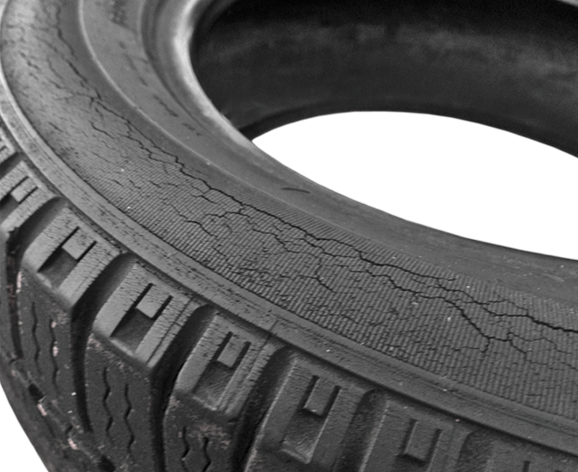 Avec le temps, le caoutchouc perd ses caractéristiques élastiques et des craquelures ou microfissures peuvent être visibles sur le flanc du pneu.
