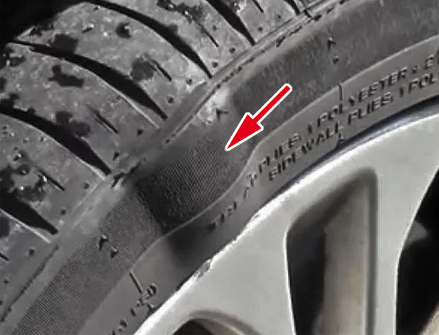 Si une hernie apparaît sur le flanc du pneu, c’est un signe de déformation importante de sa structure ; généralement dû à un choc (sur un trottoir par exemple).