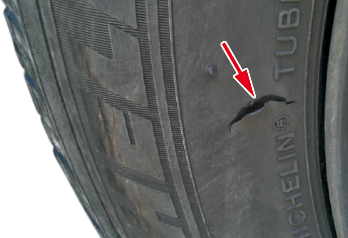 Si une entaille apparaît sur le flanc du pneu, une pierre ou un objet tranchant peuvent en être la cause.