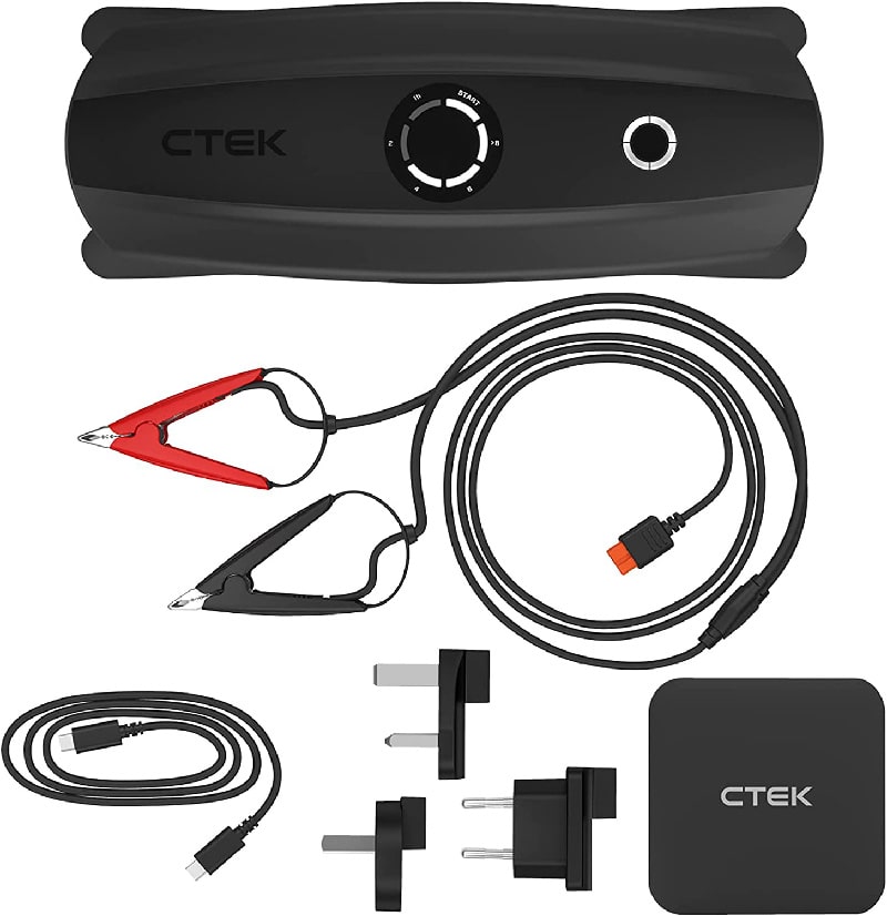 Par ailleurs, en raison de l’utilisation possible sur cette dernière technologie de batterie, le fabricant n’a pu doter le CS Free des étapes de désulfatation (régénération) qui caractérisent les chargeurs CTEK. La fonction charge d’entretien (floating), en revanche, est bien conservée sur ce dernier matériel qui dévoile tout son intérêt sur des véhicules immobilisés durant de longues semaines. Le fabricant a doté le chargeur des différents standards de connexion du marché pour le rendre le plus universel possible à l’usage y compris de pouvoir jouer le rôle d’un « power bank ». Via le secteur, la charge du CS Free est possible en moins d’une heure. En sommeil, il affiche une autonomie de plusieurs mois (et même une année complète, selon le fabricant). Comme à son habitude CTEK affiche à son catalogue tout un panel de câbles et de branchements pour étendre l’utilisation de son nouveau chargeur.