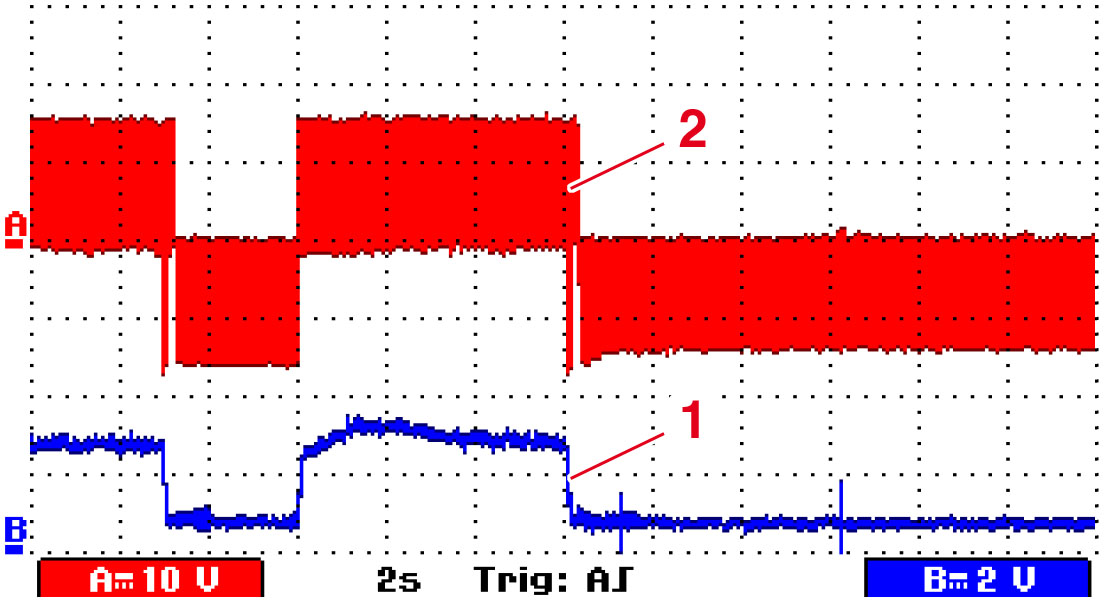 La vanne de recyclage des gaz d'échappement (EGR) motorisée est équipée d’un potentiomètre qui enregistre les mouvements de la vanne. Si le mouvement d’ouverture (1) ne correspond pas à la commande (2), une anomalie est enregistrée.