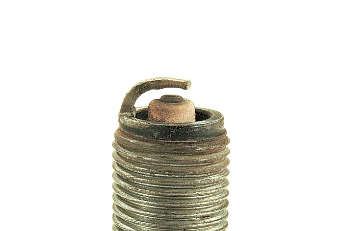 Aspect d'une bougie d’allumage usée (usure importante des électrodes)