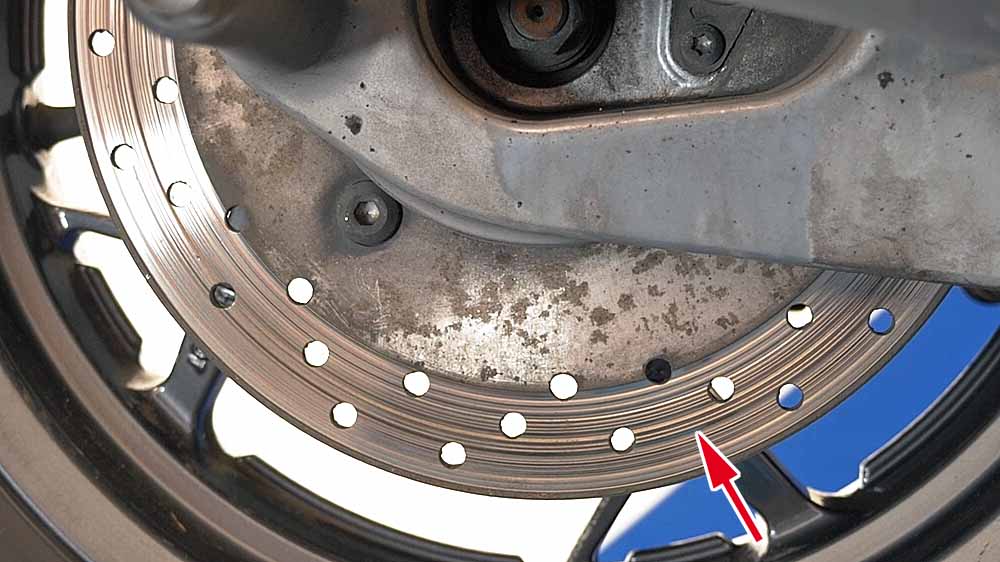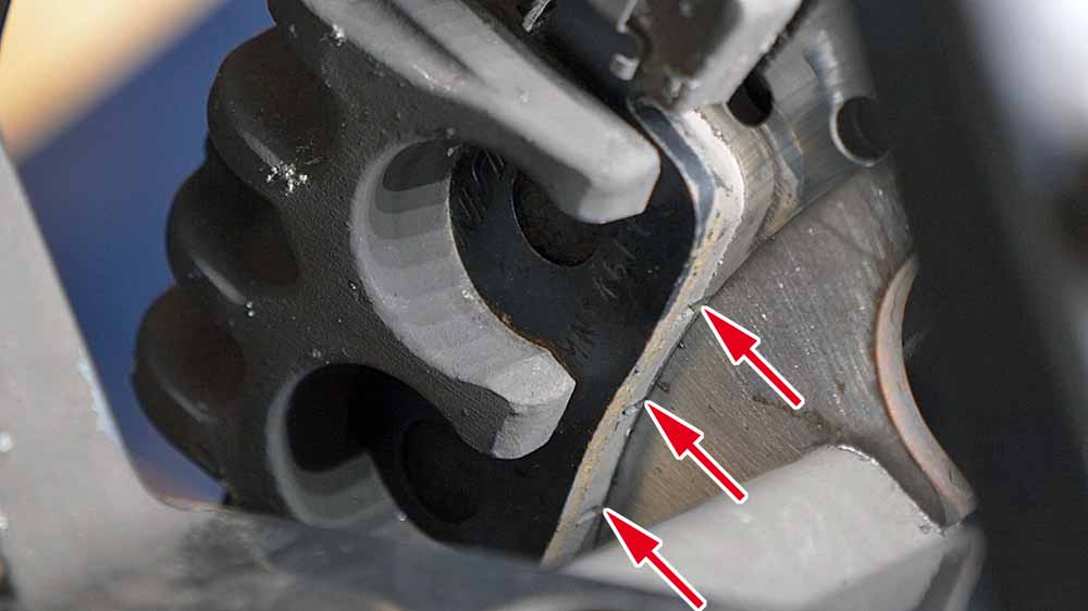Pour l’avant comme pour l’arrière, vous devez remplacer les plaquettes lorsque le fond des rainures d'indication d'usure des garnitures est atteint ou proche de l’être.