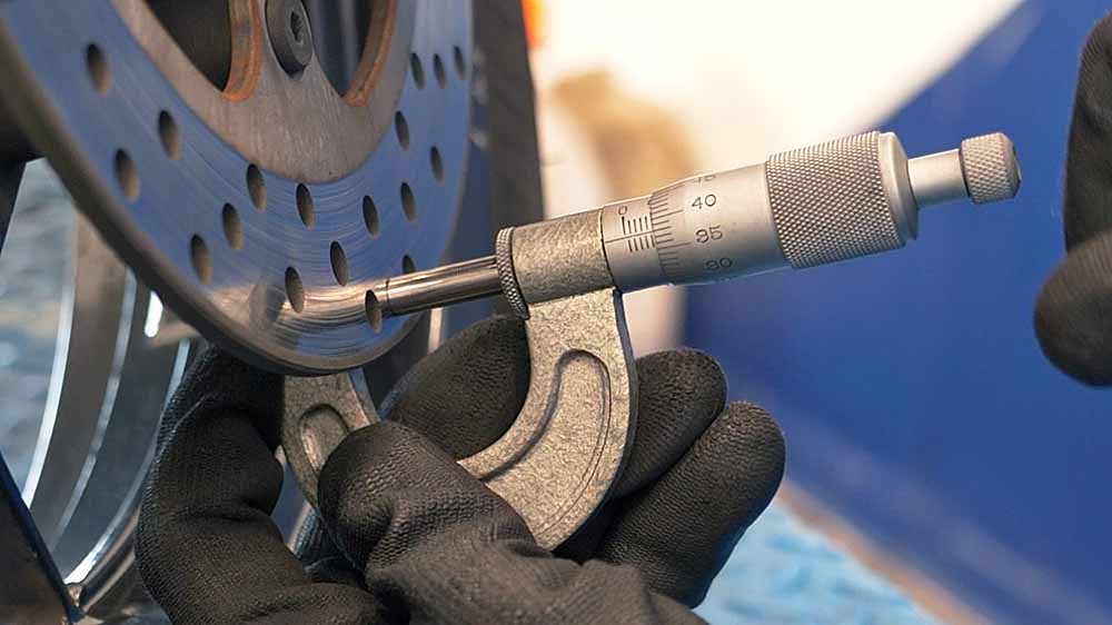 - À l'aide d'un pied à coulisse ou d'un micromètre, mesurez l’épaisseur du disque en plusieurs points au niveau de sa surface de friction.