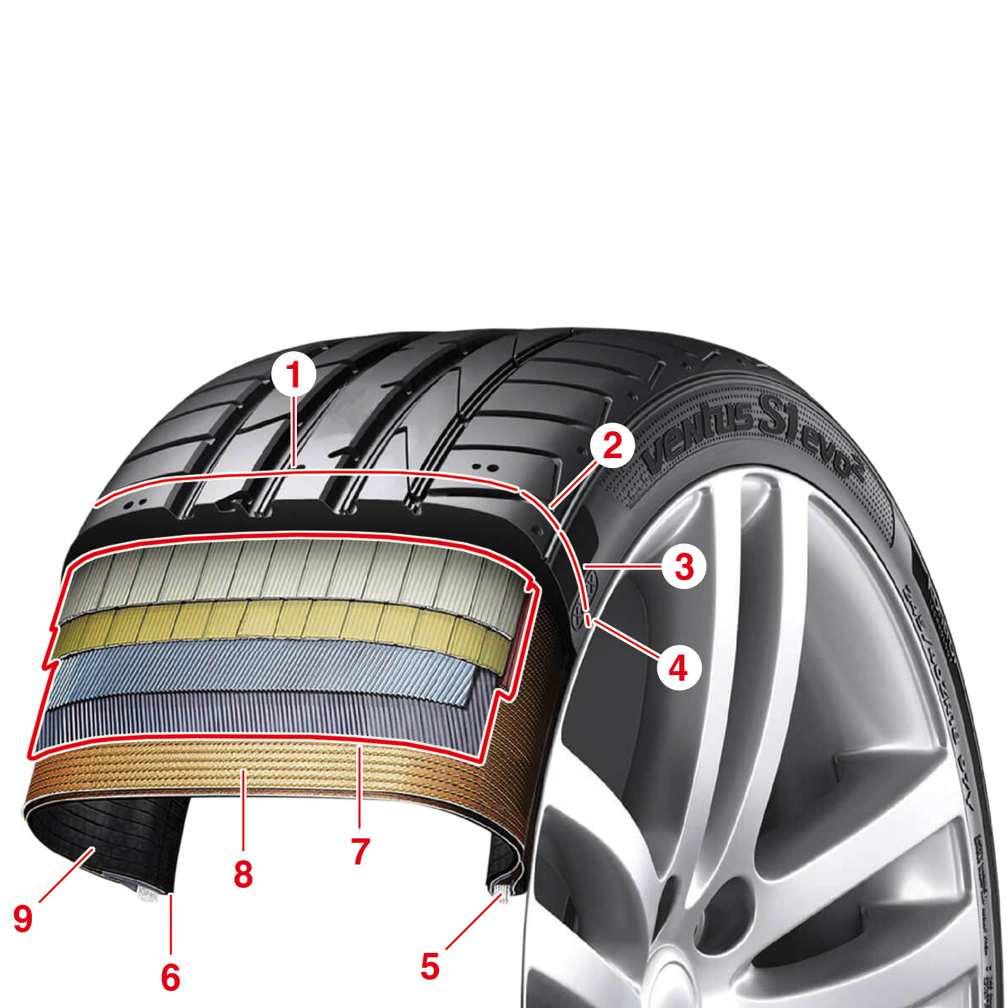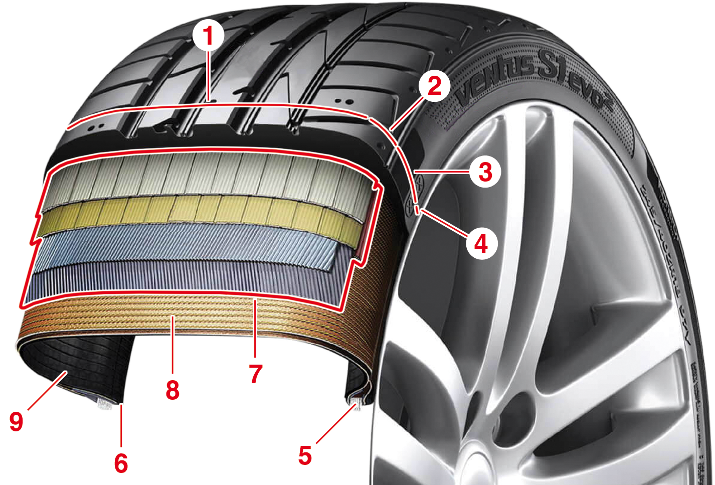8. Nappes de carcasse : elles sont en fibres de nylon et d’aramide ; elles améliorent la stabilité et la précision directionnelle