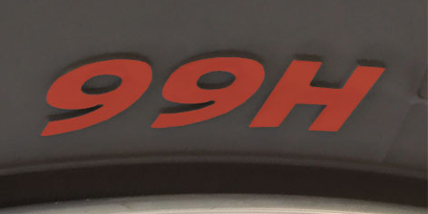 H - Indice de vitesse. Il indique la vitesse maximale que le pneu peut atteindre (ici, 210 km/h)