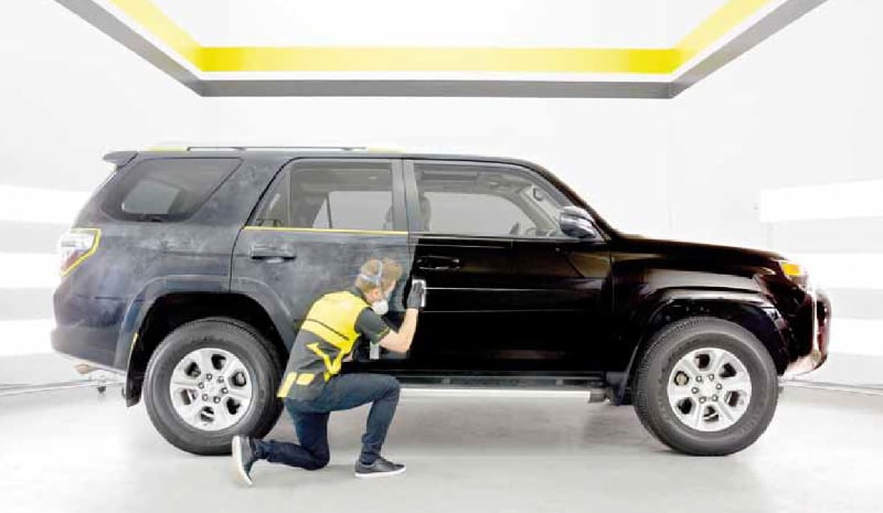 Mais de quoi parle-t-on avec RestorFX? L’enseigne se positionne entre la carrosserie traditionnelle et la cosmétique. Il s’agit de « réparer » le vernis pour redonner tout son éclat à la peinture sans avoir à repeindre le véhicule. C’est inédit !