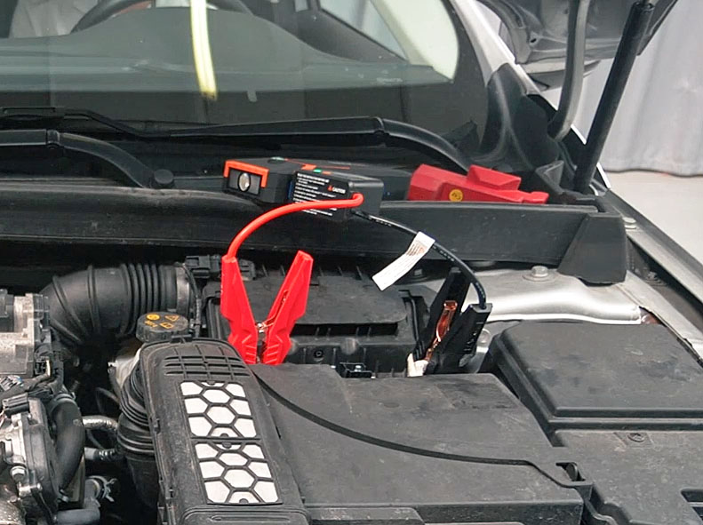 Essayez de démarrer le moteur à l'aide d'une batterie et de câbles de secours ou bien à l'aide d'un booster de batterie :