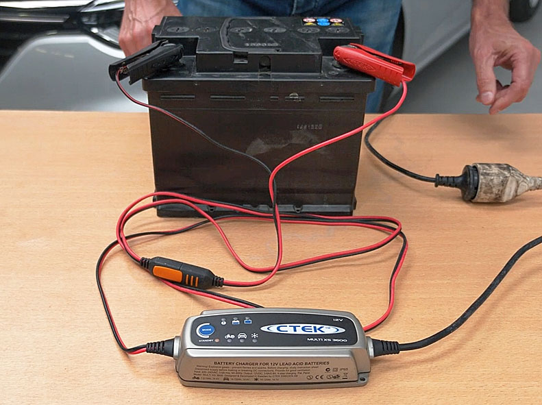 Nota : De longues périodes entre chaque utilisation du véhicule peuvent expliquer que la batterie finisse par se décharger (une température ambiante élevée accélère cette autodécharge) ; de même pour une utilisation sur de nombreux petits trajets ne permettant pas à l'alternateur de recharger suffisamment la batterie. Dans ces cas-là, il sera nécessaire de brancher périodiquement un chargeur pour éviter la décharge et la détérioration de la batterie.