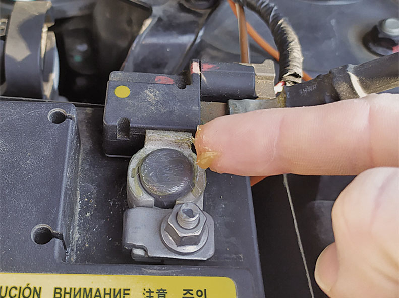 - Si, après le nettoyage, l'une des bornes recommence à s'oxyder, il est nécessaire de vérifier l'étanchéité du boîtier de la batterie. En cas de fuite d'électrolyte, remplacez la batterie (voir l'article "Remplacez votre batterie - le tuto pour ne pas se tromper").