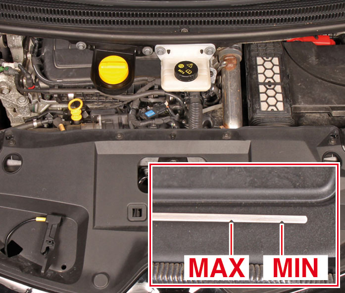 Le contrôle s’effectue moteur arrêté depuis 10 minutes et toujours sur sol horizontal.