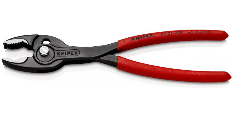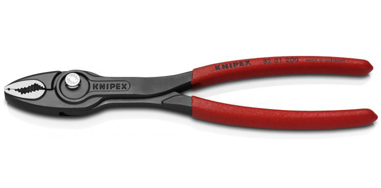 Récemment Knipex a ajouté à son offre un nouveau modèle de pince multiprise frontale et latérale qui permet d’apporter à son utilisateur une solution polyvalente pour les pièces coincées, abîmées, détériorées. Pour cela, outre ses capacités en utilisation latérale classique, cet outil unique dispose de mors de préhension, avec denture spéciale, dans l’axe longitudinal de la pince permettant de saisir frontalement et solidement des vis et des boulons. Dotée d’une charnière entre passée et d’un réglage par bouton-poussoir à 5 positions, la pince TwinGrip permet de travailler même dans des espaces exigus sur des pièces de 4 à 22 mm avec efficacité. Une denture robuste et un rapport de démultiplication élevé à l’extrémité assure une prise exceptionnelle. De plus, la mâchoire latérale, avec l’optimisation de sa géométrie en forme de ’’vague’’ à 2 zones, procure un alignement opposé de la denture, pour une préhension maximale. Enfin la pince est équipée d’un système anti-pincement pour réduire le risque de doigts écrasés.