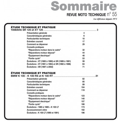 RMT 55 - BMW K100 (1983 à 1991) - YAMAHA XT et SR 125 (1982 à 2002)