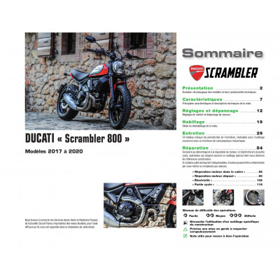 La RMT DUCATI SCRAMBLER (Icon, Icon Dark, Classic, Full Throttle, Desert Sled, Café Racer) est une revue technique essentielle au bon entretien de votre Ducati. Acheter cette revue moto technique vous permettra d'acquérir les compétences nécessaires pour entretenir vous même et à moindre coût votre moto.