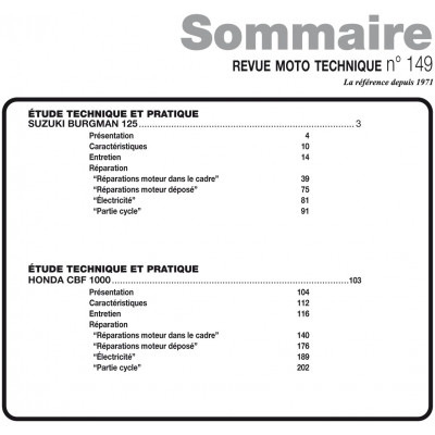 RMT 149 - SUZUKI BURGMAN 125 (2007 et 2008) - HONDA CBF 1000 (2006 à 2008)