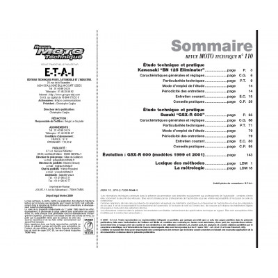 La RMT KAWAZAKI BN125 et SUZUKI GSXR 600 est une revue technique capitale au bon entretien de votre véhicule.