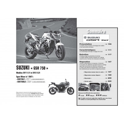 RMT SUZUKI GSR 750(11/12)+ KAWA ER6N/F 2009/2011 pour entretenir votre moto à moindre coût. Pour chaque modèle, des explications claires et de nombreuses illustrations pour effectuer l?entretien et les réparations de votre engin.