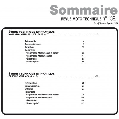 La Revue Technique des Yamaha YBR125 et Suzuki 650 met à votre disposition toutes les astuces concernant l'entretien et la réparation de ces deux modèles. Grâce aux descriptions ainsi qu'aux schémas disponibles dans ce document, vous pouvez démonter et remonter les principales pièces de votre deux roues en toute sécurité.