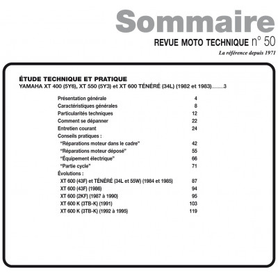 Acheter cette Revue Moto Technique vous permettra d'acquérir les connaissances nécessaires pour réparer et entretenir vous-même, et à moindre coût, votre YAMAHA XT (1982 à 1995) :