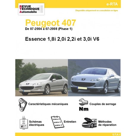 La e-RTA de la Peugeot 407 Essence Phase 1 couvre les variantes suivantes :