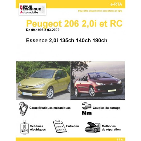 La e-RTA de la Peugeot 206 2,0i S16 et RC couvre les variantes suivantes :